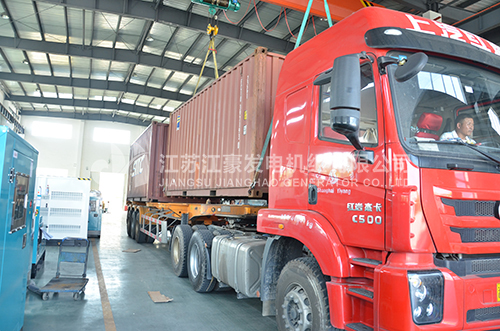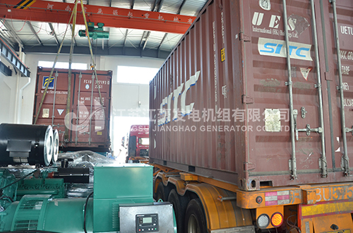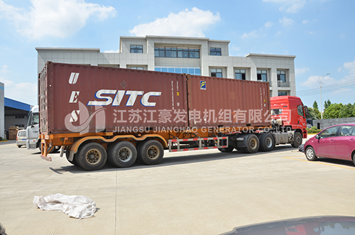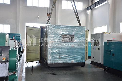 柴油发电机组、柴油发电机,一台500KVA康明斯柴油发动机,配上海恒声发电机,外加低噪音箱体,我公司静音型发电机组产品通过国家专利技术的静音箱均采用鞍钢冷板制作;同时经过严格的酸洗磷化及多层烤漆处理,有效达到防火防腐蚀效果。下图为机组出厂现场: