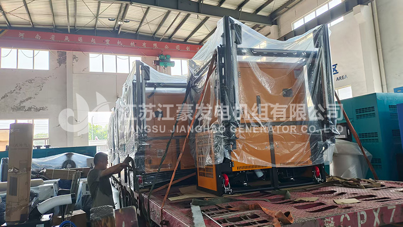 15台30kW江豪自卸式柴油发电机组发货我公司工程师对机组进行了全面的出厂前检测调试后,各项指标符合国家标准,下图为机组出厂现场