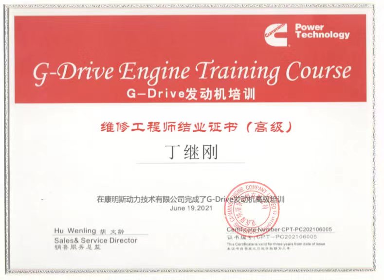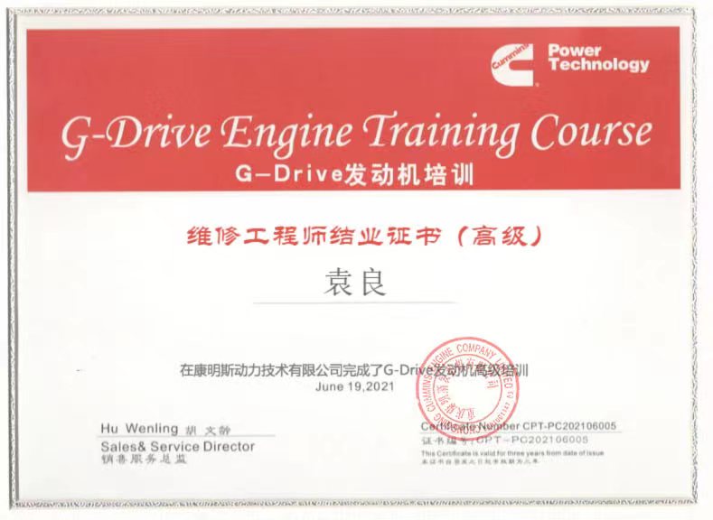 康明斯动力维修工程师结业证书(高级)